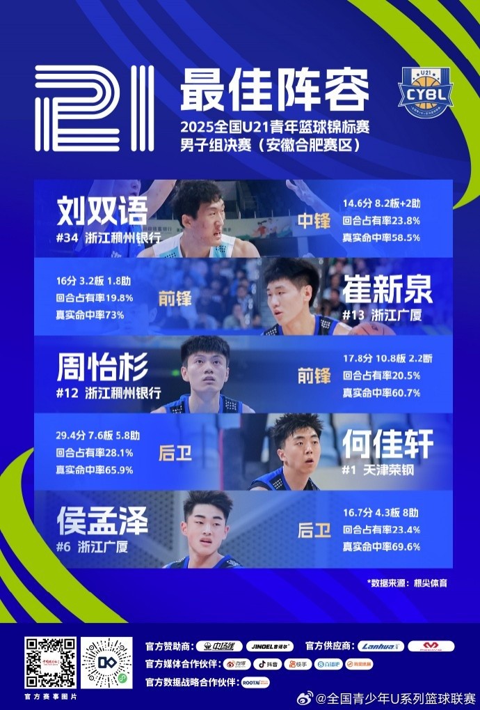 全国U21青年篮球锦标赛最佳阵容公布!