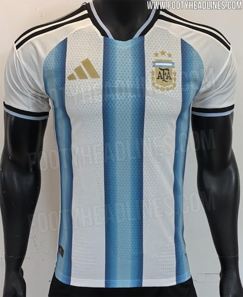 其核心特点是蓝色条纹采用了双色调的渐变效果,从浅蓝色平滑过渡到深蓝色,为经典设计注入了动感。据悉,这一设计的灵感来源于阿根廷队在1978年、1986年和2022年三次夺得世界杯冠军时所穿的球衣,旨在致敬国家的足球传奇。