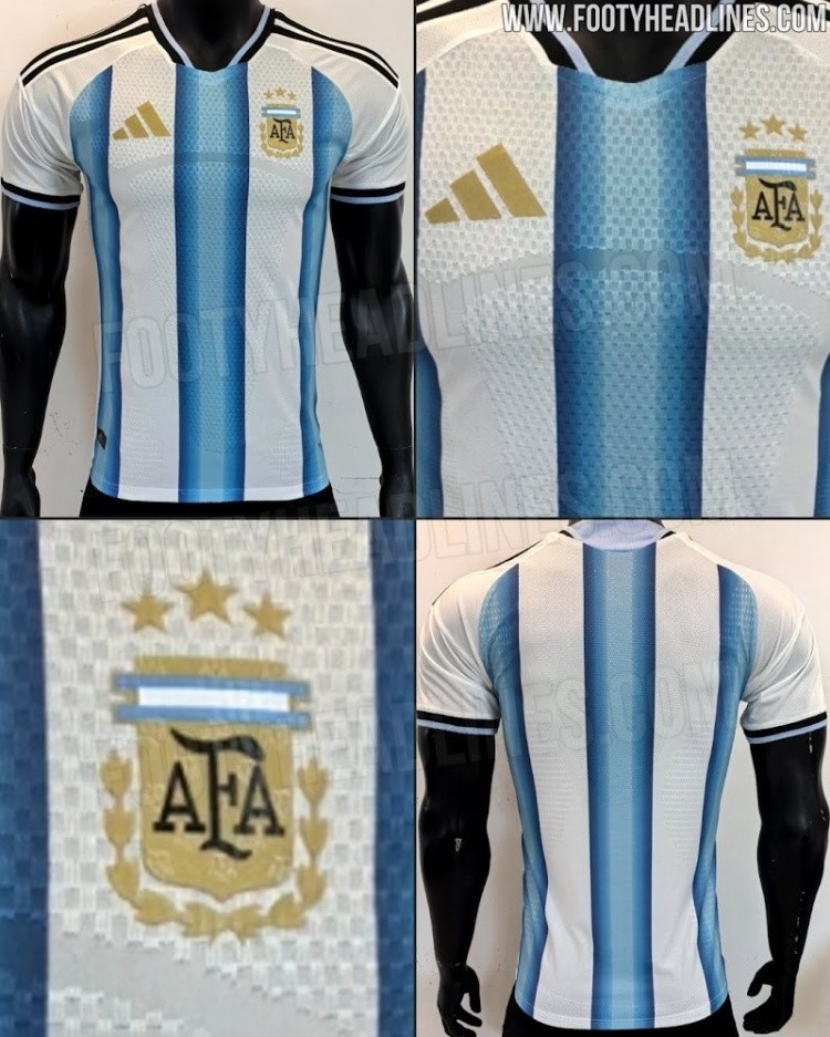 9月28日讯 足球装备网站footyheadlines报道,阿迪达斯为阿根廷国家队设计的2026年世界杯主场球衣谍照近日曝光。新款球衣在保留了传统的白色与天蓝色竖条纹的基础上,加入了显著的现代设计元素。