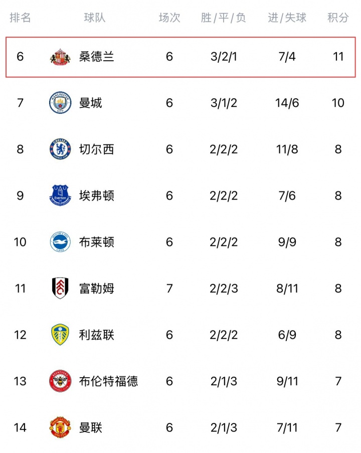 开赛6轮,桑德兰3胜2平1负已积11分,且近4轮保持不败。据统计,桑德兰6轮11分是自2012/13赛季西汉姆联(11分)以来,升班马取得的最好开局。如果今天在老特拉福德能抢到积分,那么他们7轮的积分就将至少追平上赛季的南安普顿。
